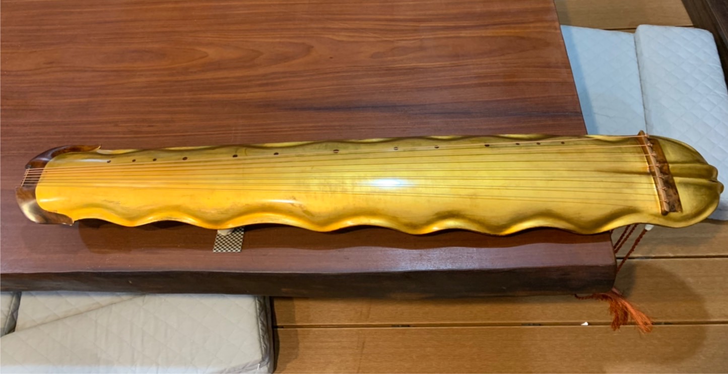 在會場展出的十餘張古琴中,最吸睛的莫過於一張貼滿金箔的黃金色古琴,閃著金光的琴身就猶如上了金箔的神尊,令人讚歎不已!古琴主人柯宗苗正是一位道教法師,曾經當過寺廟主委,平日積極參與臺北松山慈惠堂讀經班活動,也是華梵斲琴工坊推廣教育班的學員。