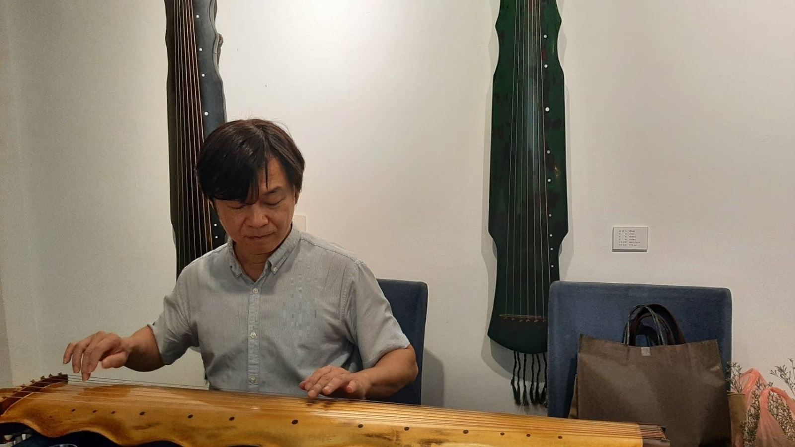 華梵大學智慧生活設計學系林正雄教授現場示範古琴演奏。
