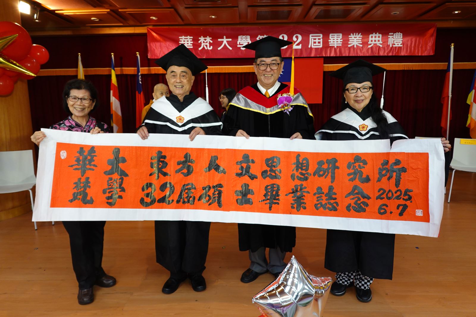 此外,包括華梵文教基金會董事長仁朗法師、台師大美術館執行長曹筱玥教授、國立臺南大學研發長林大偉教授等貴賓也都蒞臨盛會,為年輕畢業生與熟齡畢業生獻上祝福。
