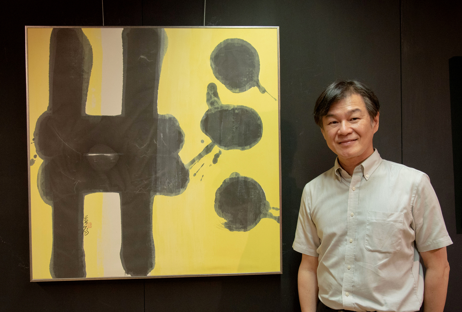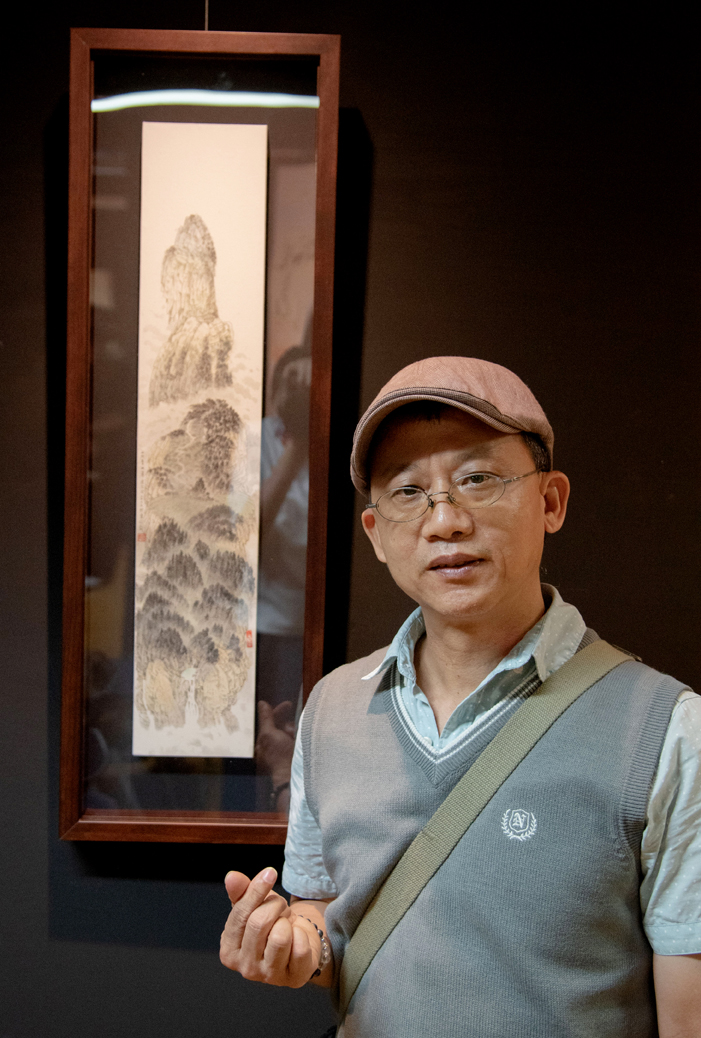 華梵大學美術與文創學系連建興老師與作品《山外青山翠》。