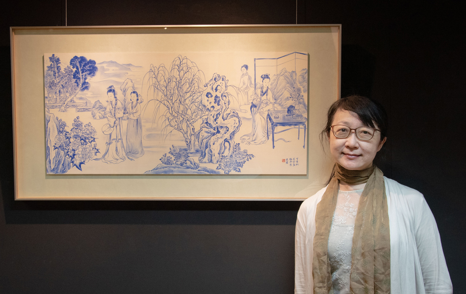 華梵大學美術與文創學系聶蕙雲老師及作品《牡丹亭系列---遊園》。