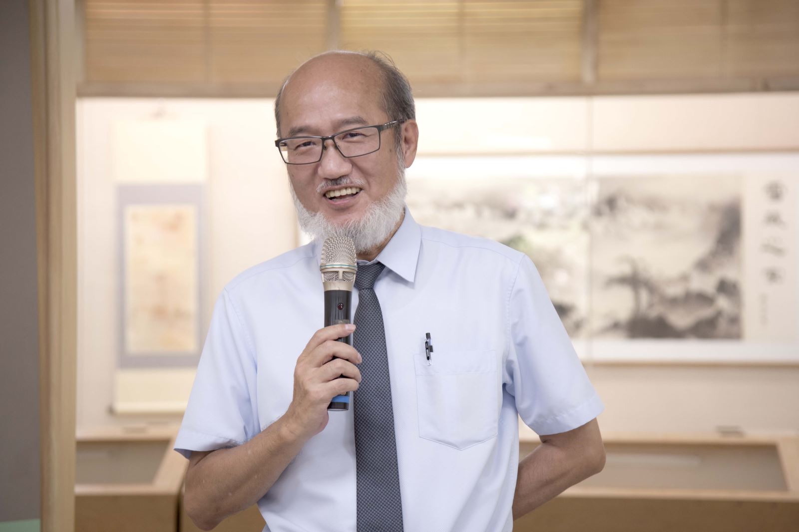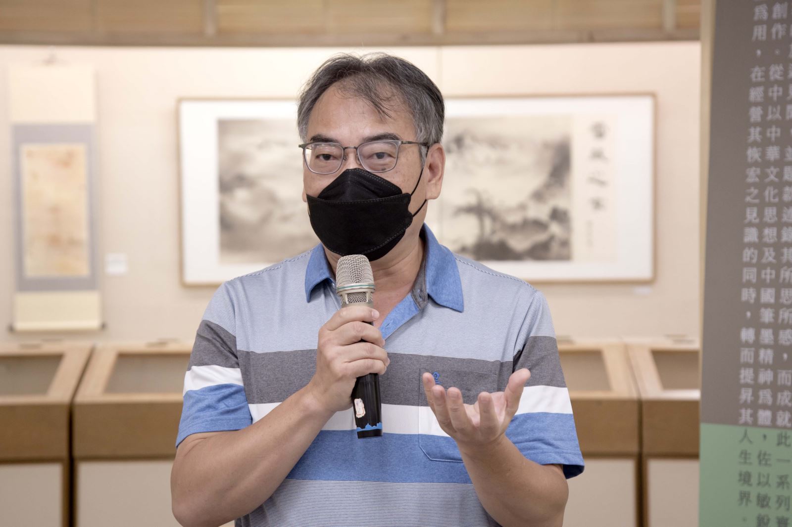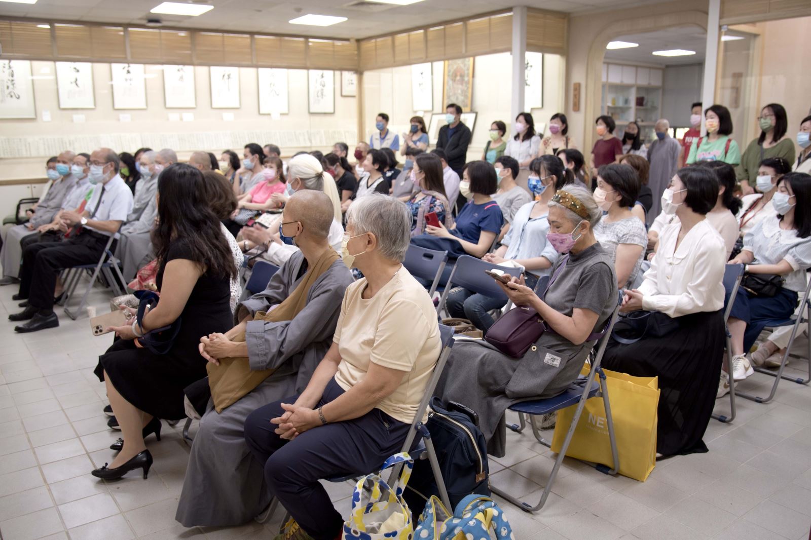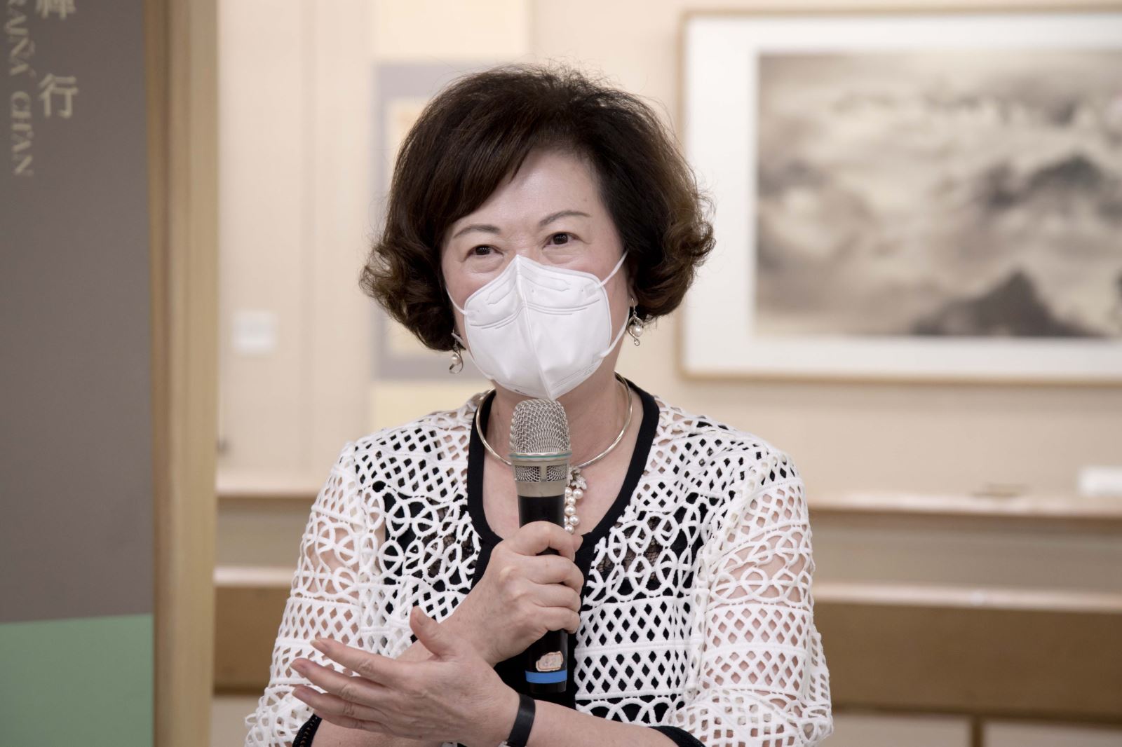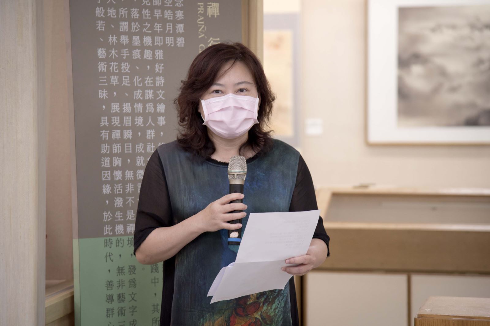另外,包括華梵大學簡江儒教務長、佛教藝術學系釋智善主任、華梵文物館陳娟珠主任、國立臺灣藝術大學視覺傳達設計學系蘇沛萱教授、中華大風馨傳書畫會金增光理事等人也上台致詞,給予宋妍嫿老師加油打氣,祝賀展覽圓滿成功。
