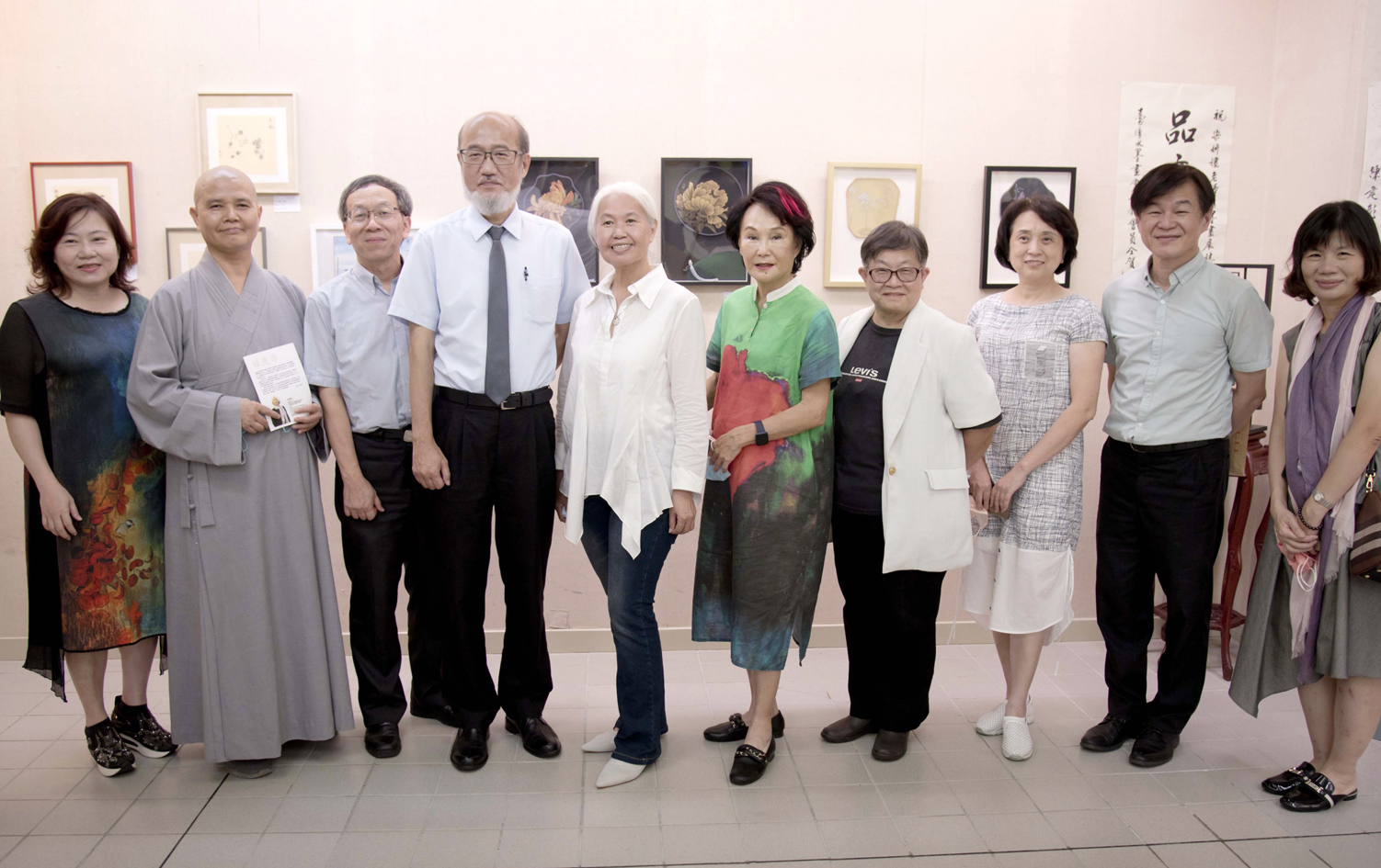 宋姸嫿老師(左五)與無曲即心-宋姸嫿彩墨畫展來賓們合影紀念。