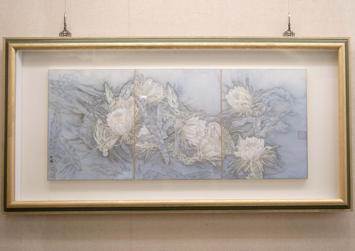 無曲即心-宋姸嫿彩墨畫展作品《遙寄秋月》/《櫻花》。