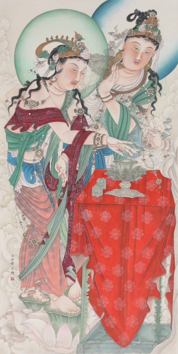 無曲即心-宋姸嫿彩墨畫展作品《菩薩焚香圖》。