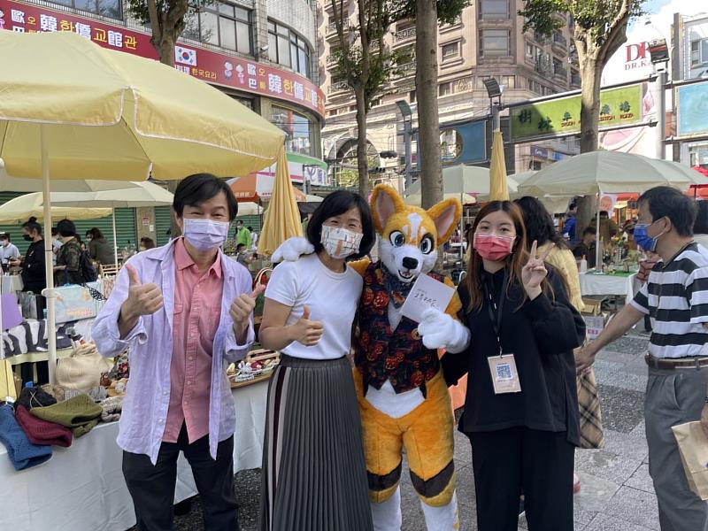 立法委員蘇巧慧(左二)參加「文青不在家」活動,為活動策劃人華梵大學研究生黃詅儷(右一)與黃智陽院長(左一)加油打氣。