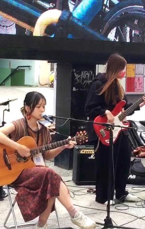 華梵大學學生黃詅儷(右)與臺北藝術大學學生黃庭以音樂表演帶動氣氛。 展覽區域從樹林後站廣場一路延伸到老街道到中興街,沿路展示樹林學童的藝術創作,透過孩童的眼睛重新認識他們眼中的樹林。活動並在街道中展示珍貴的樹林老照片,許多已經消失的地標如樹林酒廠、民生球場、水源地等,都引發老輩思古之幽情,當參觀民眾在展出老照片中發現自己小時候的照片及阿媽年輕的照片時,更是驚呼連連!