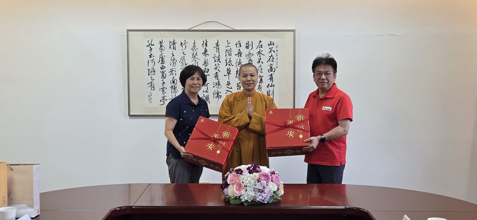 今年黃幸娟副會長等一行9人不忘初衷,於9月4日來到華梵供養外籍學僧,18日中秋節前夕再訪華梵,陪同紅十字會苗栗縣支會陳中隆總幹事與急救團葉春英教練,將防寒羽絨衣與食物銀行的食品禮盒,捐贈給在華梵求學的7名印尼學生與26名外籍學僧。 菩提心基金會黃幸娟副會長(左)與紅十字會苗栗縣支會陳中隆總幹事(中)等人非常關心華梵大學的外籍學僧與印尼學生。 陳中隆總幹事說,台灣的冬天比東南亞冷,因此特地準備了大件羽絨衣,讓同學可以度過溫暖的冬天;另外,紅十字會也在進行急救志工的推廣訓練,可和華梵大學合作培訓,讓更多年長者擁有救命技能,當身邊親友倒下時可以立即救人一命。 為了表達對菩提心基金會與紅十字會的謝意,就讀佛教藝術學系碩士班一年級的越南籍學僧智蓮法師智蓮法師,特地以越南食材做出可口的家鄉味果凍,搭配自己手作的香醇玉米香奶,招待外賓一同品嚐。 紅十字會苗栗縣支會陳中隆總幹事(右)與急救團葉春英教練(左)致贈物資給華梵大學。 智慧生活設計學系三年級劉伊娣也分享從印尼來台求學的心路歷程,剛來時一句中文都不會,經常躲在宿舍裡哭,幸好華梵的老師與同學耐心教導,現在不僅中文流利輪轉,能在公開場合侃侃而談,開朗活潑的她還在許多活動中擔任小隊輔,一點也看不出是個外國人。 華梵大學智慧生活設計學系三年級劉伊娣(中)分享從印尼來台念書的趣事。 華梵大學李天任校長特別感謝菩提心基金會與紅十字會苗栗縣支會,對全台第一所由佛教人士創辦的華梵大學給予大力護持,簡江儒教務長也表示,非常歡迎紅十字會苗栗縣支會將急救志工的培訓引進華梵樂齡大學,協助更多熟齡學生在急難時成為救人的天使。