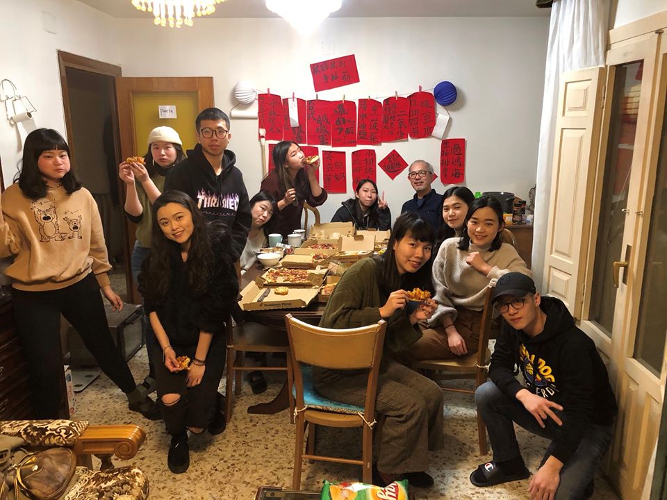 緊湊的課程也不忘帶給華梵遊子關愛與問候。藉此課程之便,蔡老師也探視了正在該校進行交換研習的13名華梵學生。華梵交換生受到當地老師的高度讚賞與肯定,授課老師表示華梵學生學習態度佳,且具自主思辯能力。同學們也都能把握在歐洲學習的機會,利用假期走訪各國美術館、畫廊、名勝古蹟,增廣見聞和深化專業!