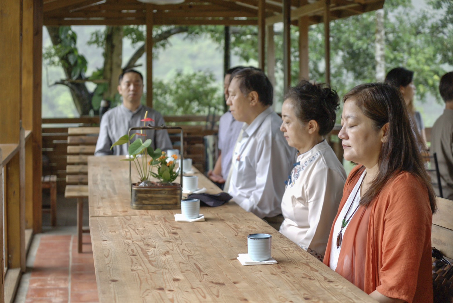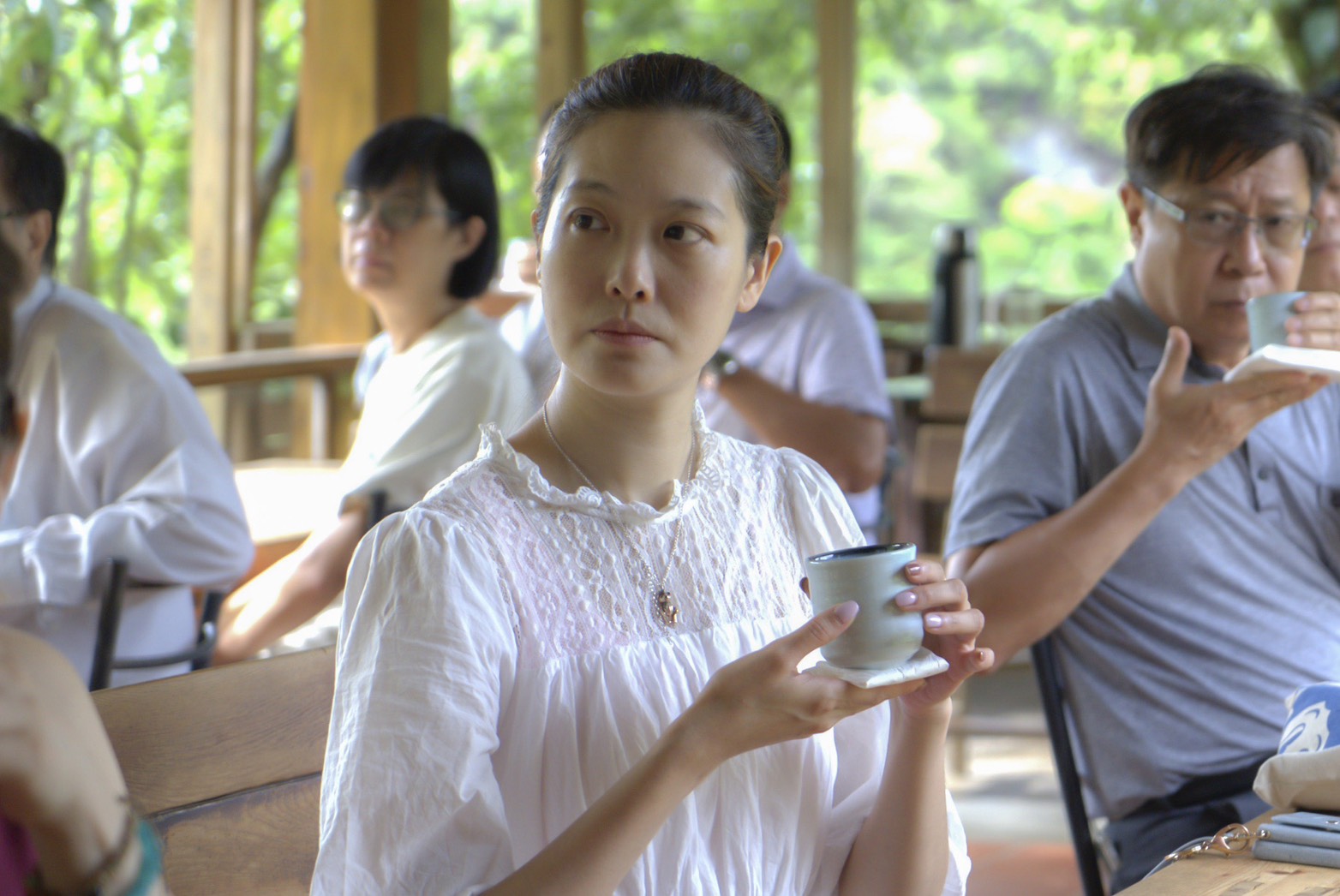 名模姚采穎全程與華梵教職員參與整場靜心茶會。 您信不信,喝七碗千年古茶就可以淨滌身心,與自己對話;華梵大學舉辦了一場特別的「七碗靜心茶會」,邀請教職員品嚐中央山脈甘甜醇美的珍稀千年古茶,再透過儀式引導,讓茶氣飽滿、氣運全身,連名模姚采穎都前來體驗「禪茶一味」的美妙境界。 「七碗靜心茶會」22日在華梵大學地方創生團隊運營的雲山禪茶藝文舉行,邀請已辦過一千多場「禪茶一味」茶會的茶道師吳慧珍主持。
