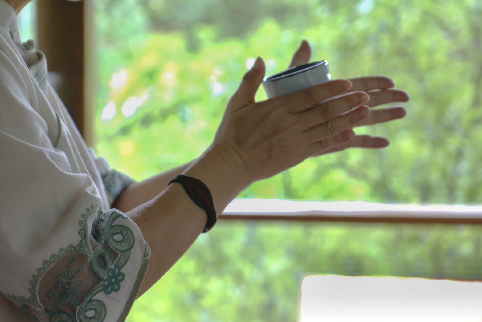 吳慧珍老師說,七碗茶的歷史可追溯到唐代詩人盧仝的詩作〈走筆謝孟諫議寄新茶〉,後人節錄為〈七碗茶歌〉,意指每喝一碗茶都能感受到不同的意境;到了當代又被改編為〈新七碗茶歌〉,分別為「一碗喉吻潤;二碗破孤悶;三碗文思湧;四碗發輕汗;五碗肌骨清;六碗通仙靈;七碗罷罷罷,直叫新我替舊他」。 吳慧珍老師細心講解過程。 為了讓華梵教職員感受到「禪茶一味」的殊勝妙味,吳慧珍老師此次特地帶來據傳生長在玉山國家公園二千到三千年間、號稱台灣最頂級的野生古樹茶「蓬萊仙茶」給大家品嚐,並透過吟誦茶偈、茶語與茶歌,引導大家同步品茗,進入靜心狀態,感受茶的能量,並與自我對話。 據了解,蓬萊仙茶外銷一斤要價17萬台幣,喝下去後,唇齒與呼吸間盡是甘甜的蔗糖香與花香,令人神清氣爽;品茗後,吳慧珍老師再指導大家透過輕柔的拍打動作,疏通經絡,促進氣血循環,將體內濁氣排出;最後並懷抱感恩之心,感謝天地、茶葉與所有參與者,送上真摯祝福,完成獨特的「禪茶一味」體驗。 吳慧珍老師示範用掌心感受茶杯溫度。 特別的是,茶會舉辦期間,窗外忽晴忽雨,光線忽明忽暗,大家靜心品茗,與大自然的風聲、雨聲、搖曳擺盪的山林綠影互動,感受細雨灑在臉上、微風拂在身上的舒適感,原本糾結的身心都全部鬆開了,達到一種清安的境界,參加者都覺得不可思議! 吳慧珍老師奉茶過程。 華梵大學李天任校長說,感謝吳慧珍老師給他兩個小時細細品茶,讓他能好好感受自己的身體,風雨聲的起落與光線的變化更讓他體會天地萬物自有規律,人生亦是有高有低、有苦有樂。未來華梵將多多舉辦類似活動,開放更多校內外師生與社會大眾參與。 華梵大學李天任校長分享靜心後心得。 名模姚采穎從頭到尾跟著華梵教職員認真參與整場茶會,最後感恩分享,在如此大自然環抱的空間裡,無論風聲、雨聲,從身體、茶道、心的角度,都讓我們把所有的狀態回歸到當下此刻,深深沉浸自己,真是非常棒的體驗。