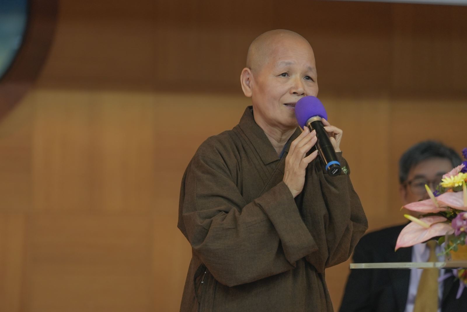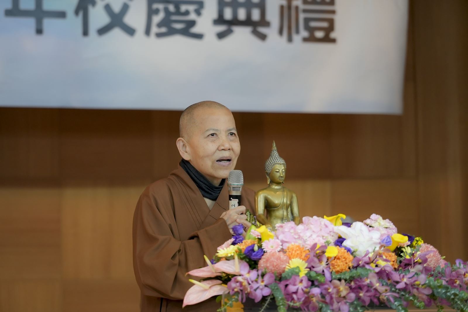 華梵大學董事長悟觀法師指出,當今世界處於大震動的狀態,佛家、儒家與老莊思想是最能安撫人心的清涼劑,而華梵創辦人曉雲導師提出的「覺之教育」就是最好的解方,她將華梵校園當成大畫布,用自己全部的生命去創作,希望每個華梵人都能傳承「覺之教育」精神,繼續將畫作完成。