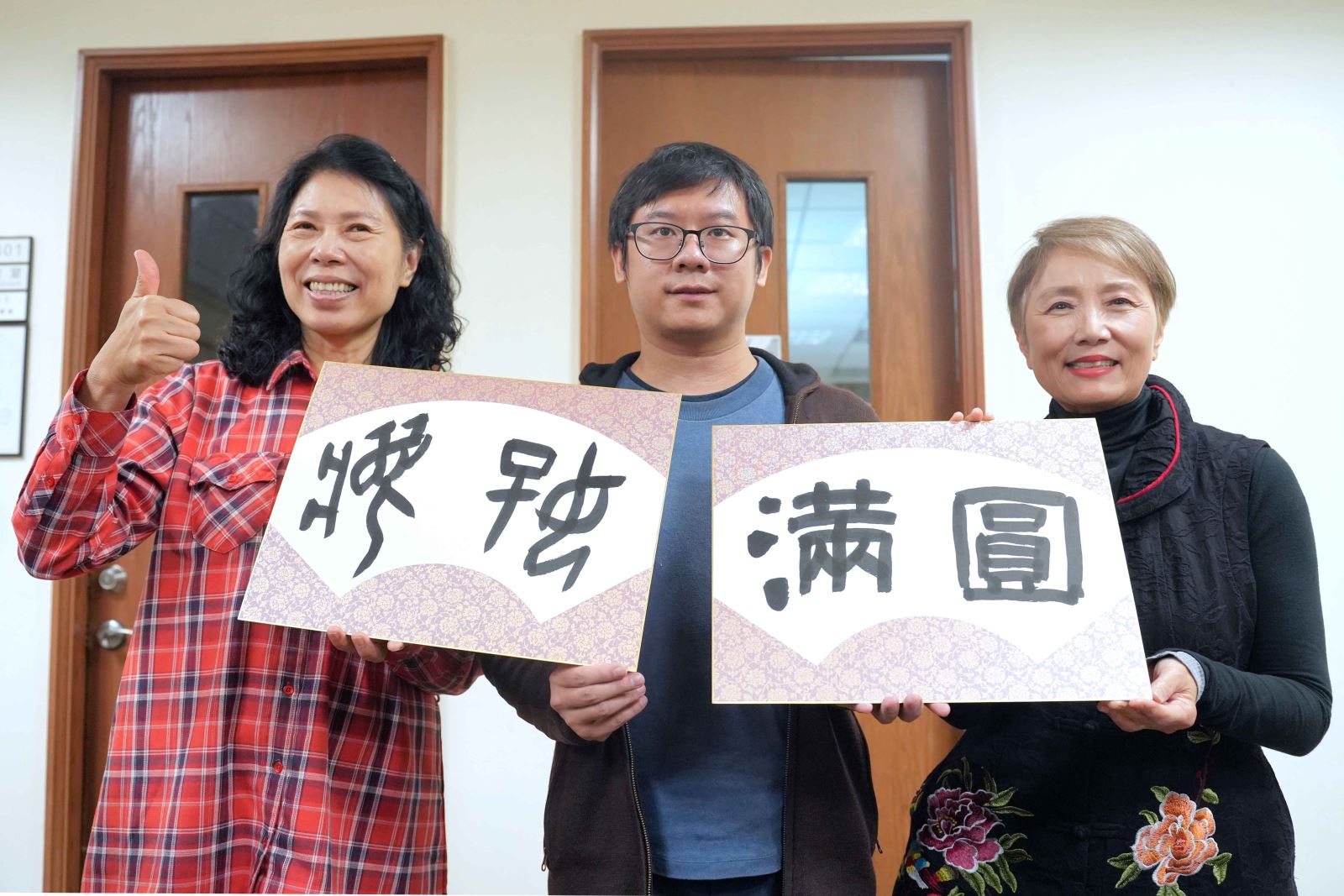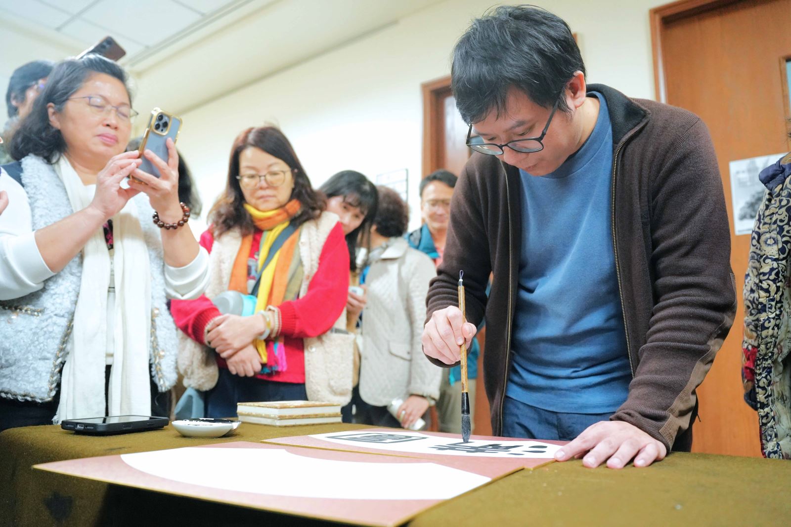 「古文字的世界」書法藝術課程成果展不僅呈現學生於課程中的創意與成長,鄧君浩老師亦在開幕式現場揮毫「圓滿」、「好夢」四字,讓參與者近距離觀察古文字創作的眉角,增添展覽的互動性。