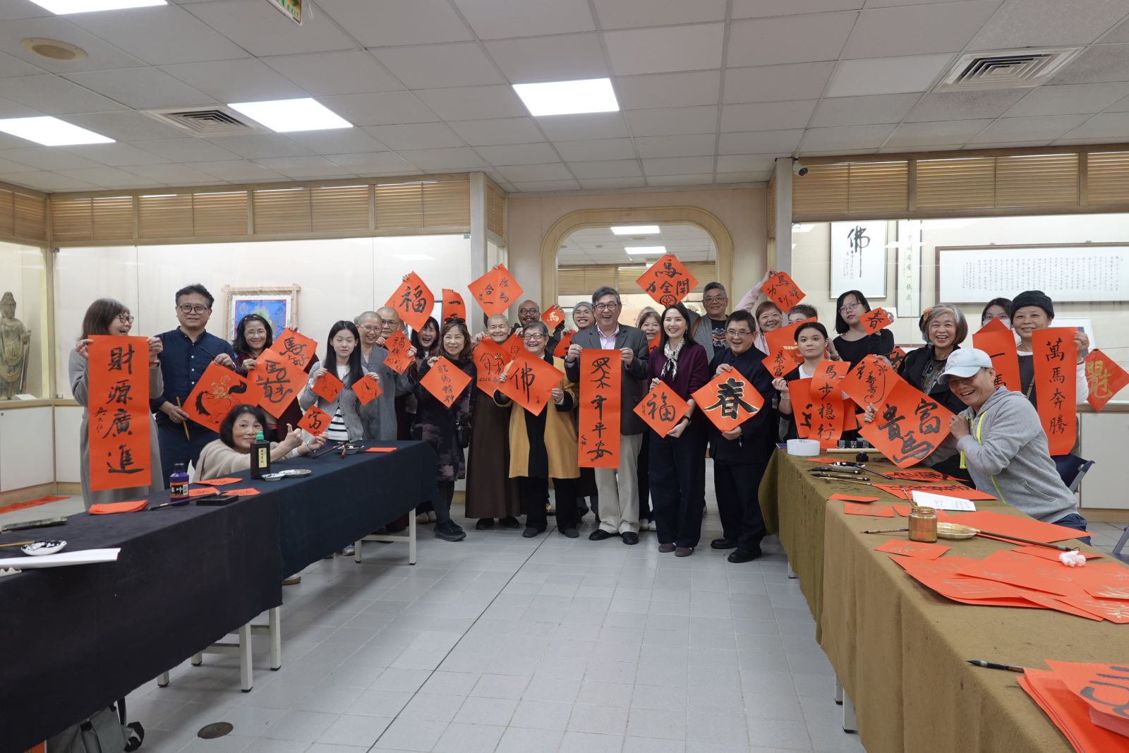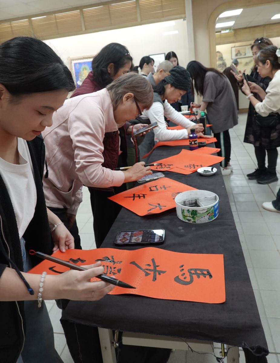 「水墨寫意技法成果展」即日起於華梵文物館展出至23日,歡迎師生與社會大眾前往參觀。 參加「書寫春聯迎新歲」活動的同學不分男女老少都來共襄盛舉。 「書寫春聯迎新歲」活動現場熱鬧非凡。