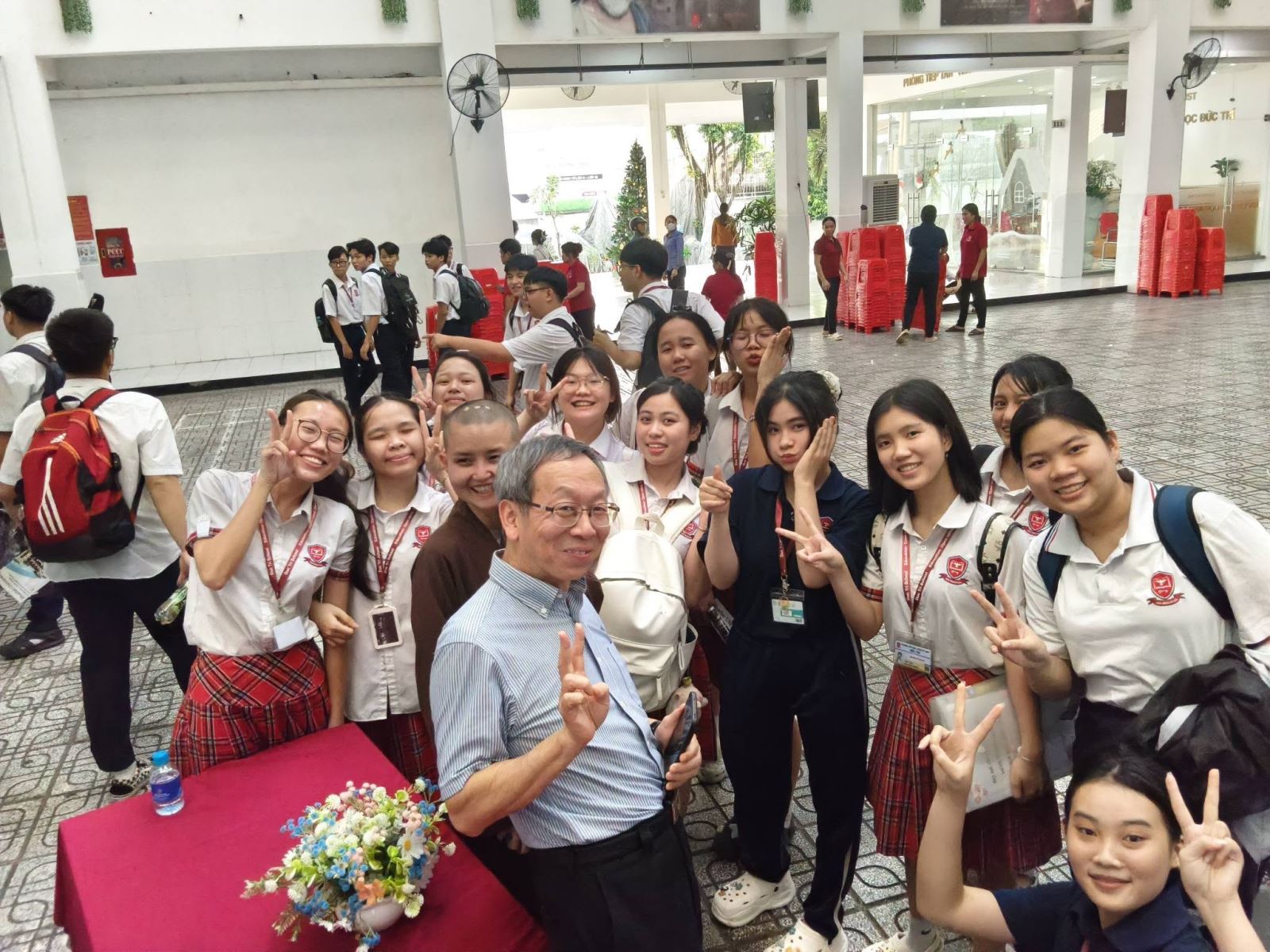 華梵大學簡江儒教務長前往越南德智學校演講,與學生親切互動。 華梵大學國際化腳步再躍進!華梵大學簡江儒教務長近日率國際處同仁赴越南洪德學校、德智學校等教育機構進行深度參訪,不僅針對 AI(人工智慧)與 IC(積體電路)半導體人才培育達成合作共識,更見證了畢業校友將 AI 技術應用於傳統經書翻譯的人文實踐。 ❇︎鏈結台灣科技優勢:培育 AI 與 IC 國際菁英
