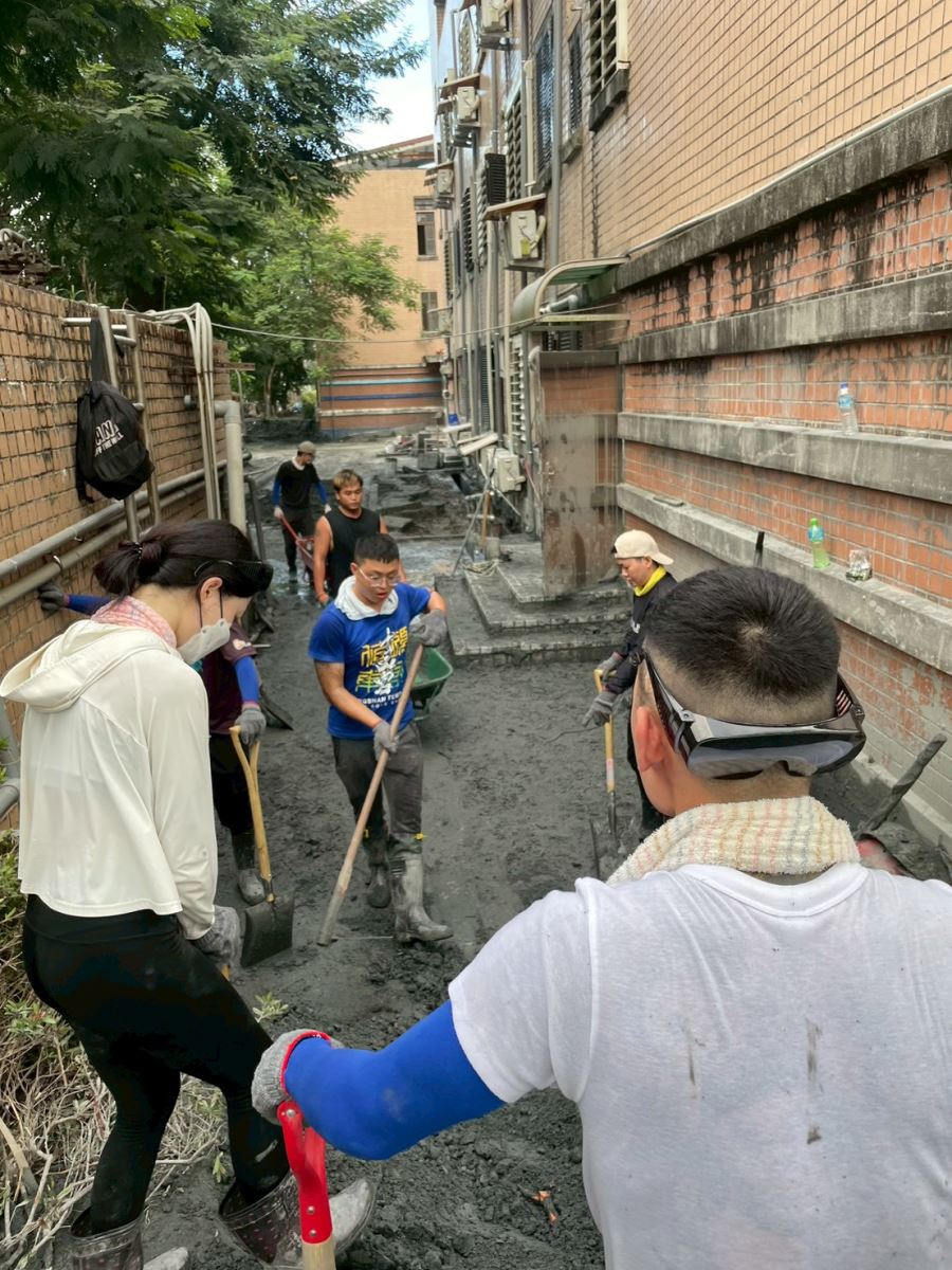 而在挖掘汙泥、搬運殘骸的救災過程中,現場「物資小兵」不斷送來補給,夥伴之間總是不斷詢問「要不要喝水?」、「有沒有受傷?」或是「要不要先休息?」人與人之間的溫度,也成為支撐華梵學子繼續揮汗的莫大力量。