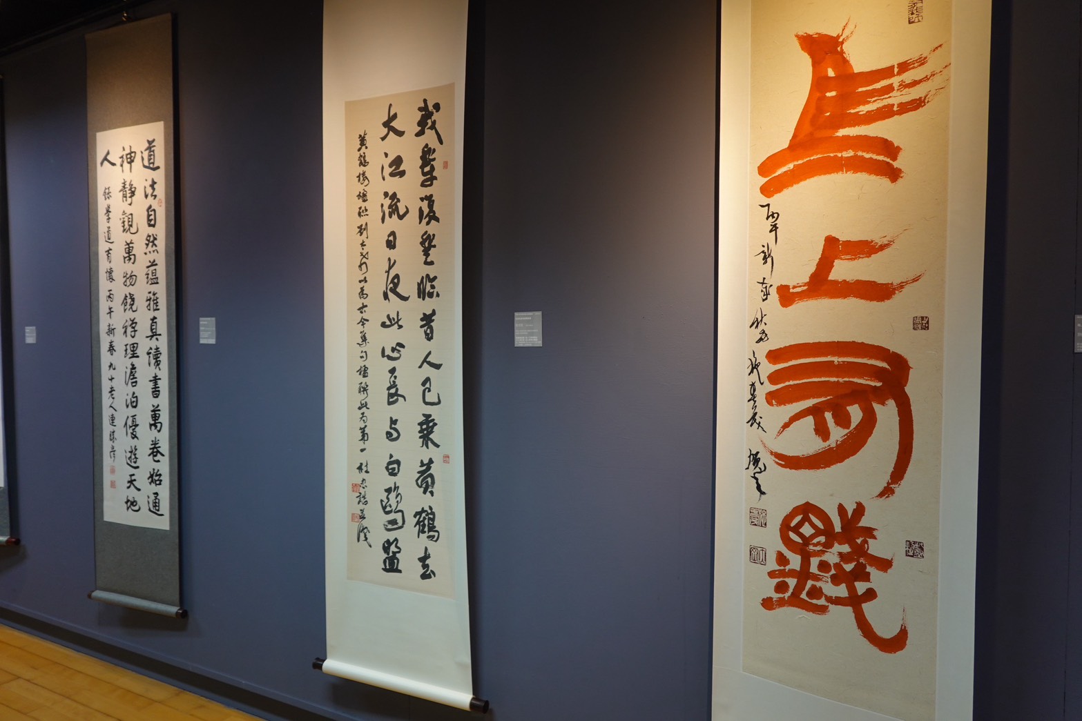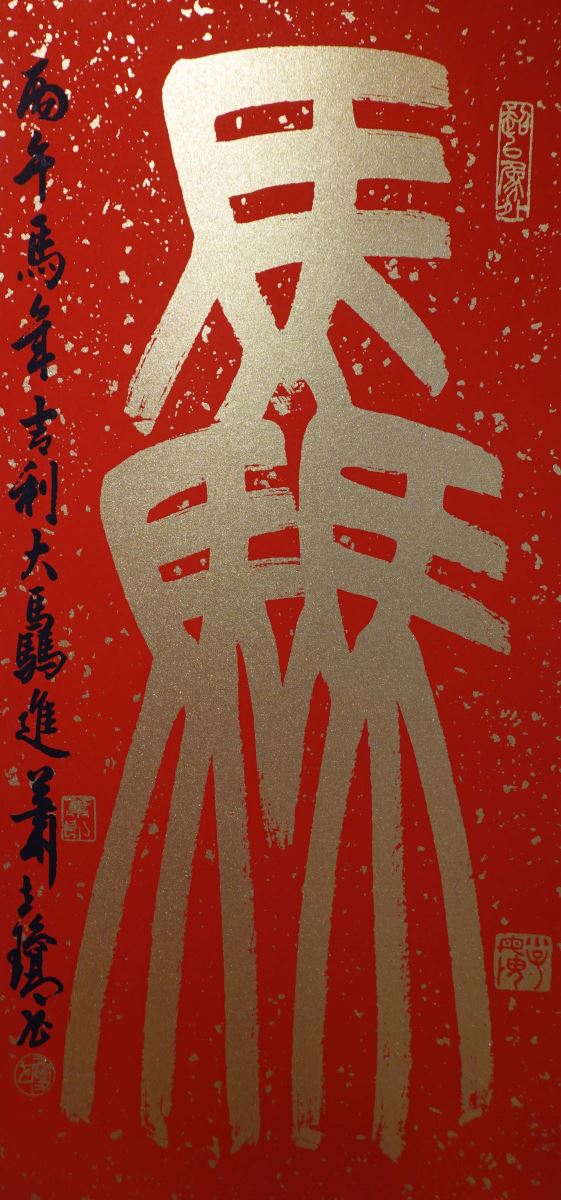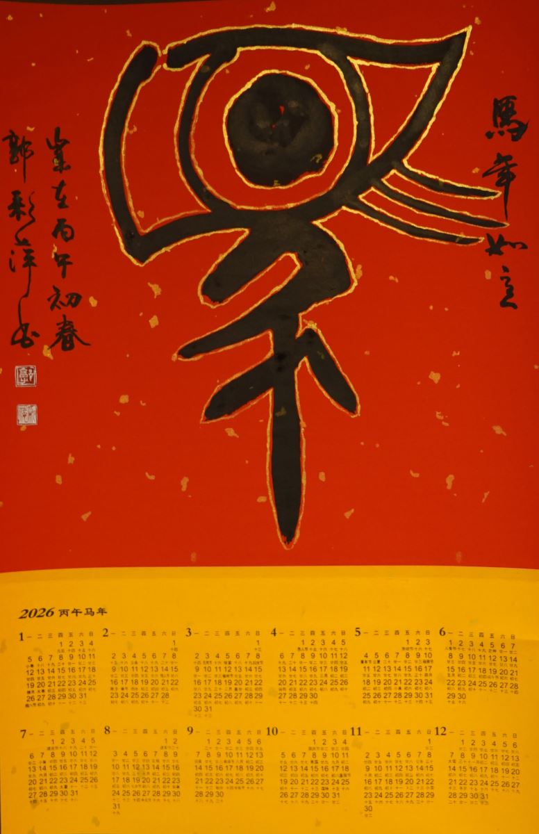 澹廬文教基金會董事長連瑞芬也提到,華梵大學利用板橋都會區的精緻場域策劃展覽,不僅能有效匯聚藝術能量,更是推廣書法藝術非常有力且具效能的作法。 中華書道學會理事長郭彩萍以月曆為形式創作作品〈馬〉。