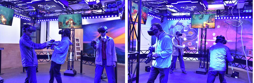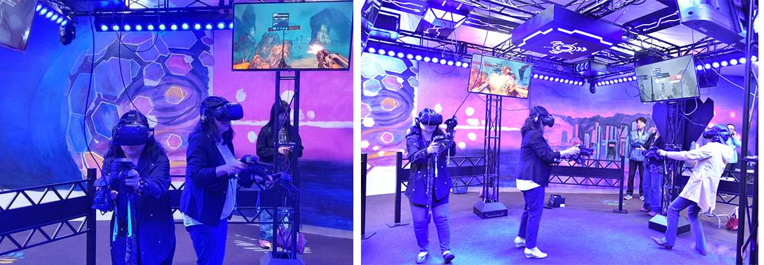 刺激的遊戲與逼真的場景令女校長軍團拼命驚聲尖叫,不斷直呼「太可怕了!」、「怪物一直圍上來都打不完!」奮力投入槍戰、最後終於成功殲滅敵軍贏得勝利的情緒High翻全場,就彷彿歷經浩劫重生一般,連現場觀戰者都感染到VR科技虛擬實境的奇幻魔力而興奮不已。相較之下,男校長軍團則是扮演冷面殺手,淡定殺完全場,不留痕跡,讓眾人又是一番驚嘆。