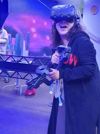 精彩逼真的虛擬實境遊戲讓高中校長玩得投入盡興。