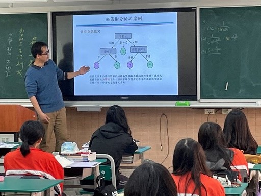 華梵大學嚴建和院長於林口高中課堂講授決策樹分析。