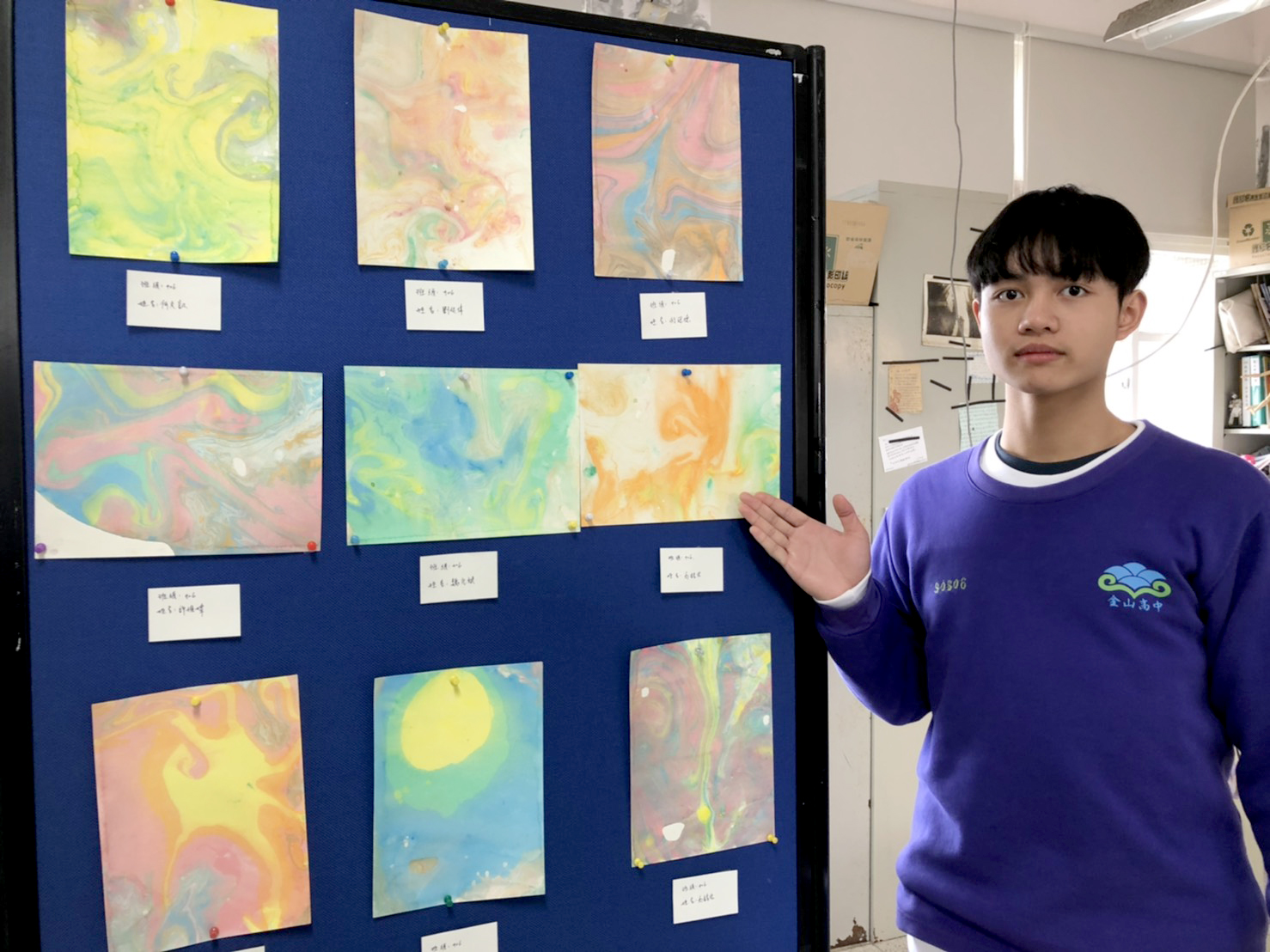 金山高中學生展出美術作品。