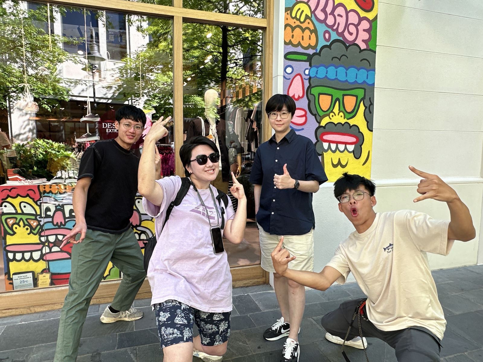 華梵美術系同學在楊侖教授(右二)導覽下,參觀藝術街區塗鴉藝術家Juay的作品。