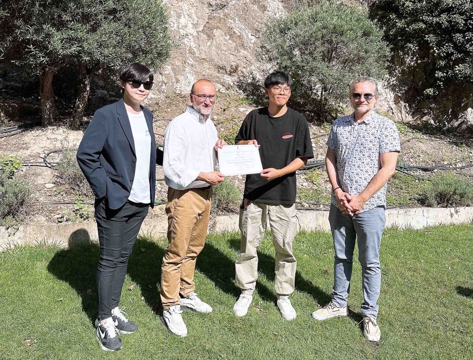 西班牙UCLM美術系主任哈維爾(左二)頒發結業證書給華梵美術系同學。