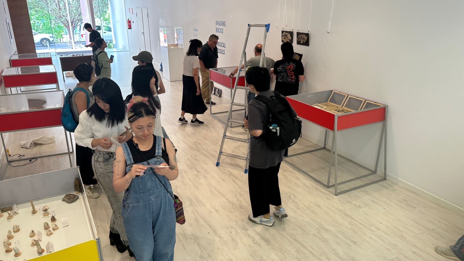 華梵西班牙美術遊學團同學為結業成果展布展。