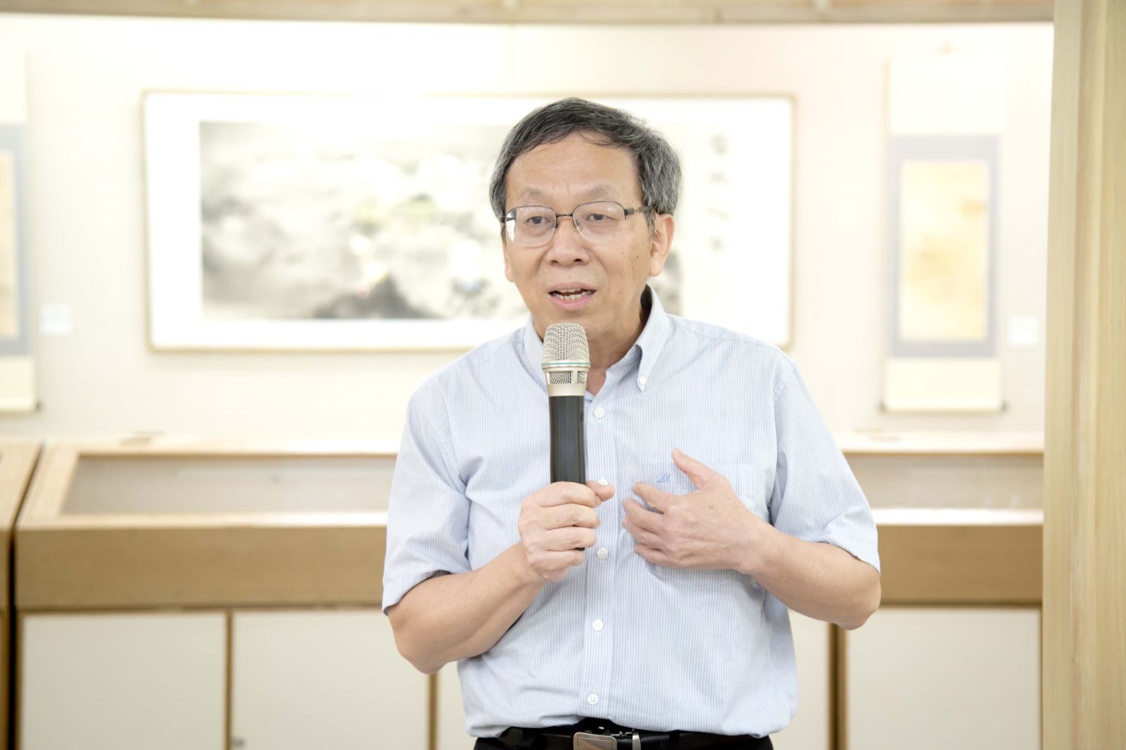 從小就被爸爸逼練書法的簡江儒教務長,感謝吳大仁老師讓他有機會拾起毛筆「重溫舊夢」,還將他的「佛」放在創辦人曉雲導師作品旁,令他感動不已。他說,退休後一定要在吳大仁老師的書法課隨班附讀,開心寫字。