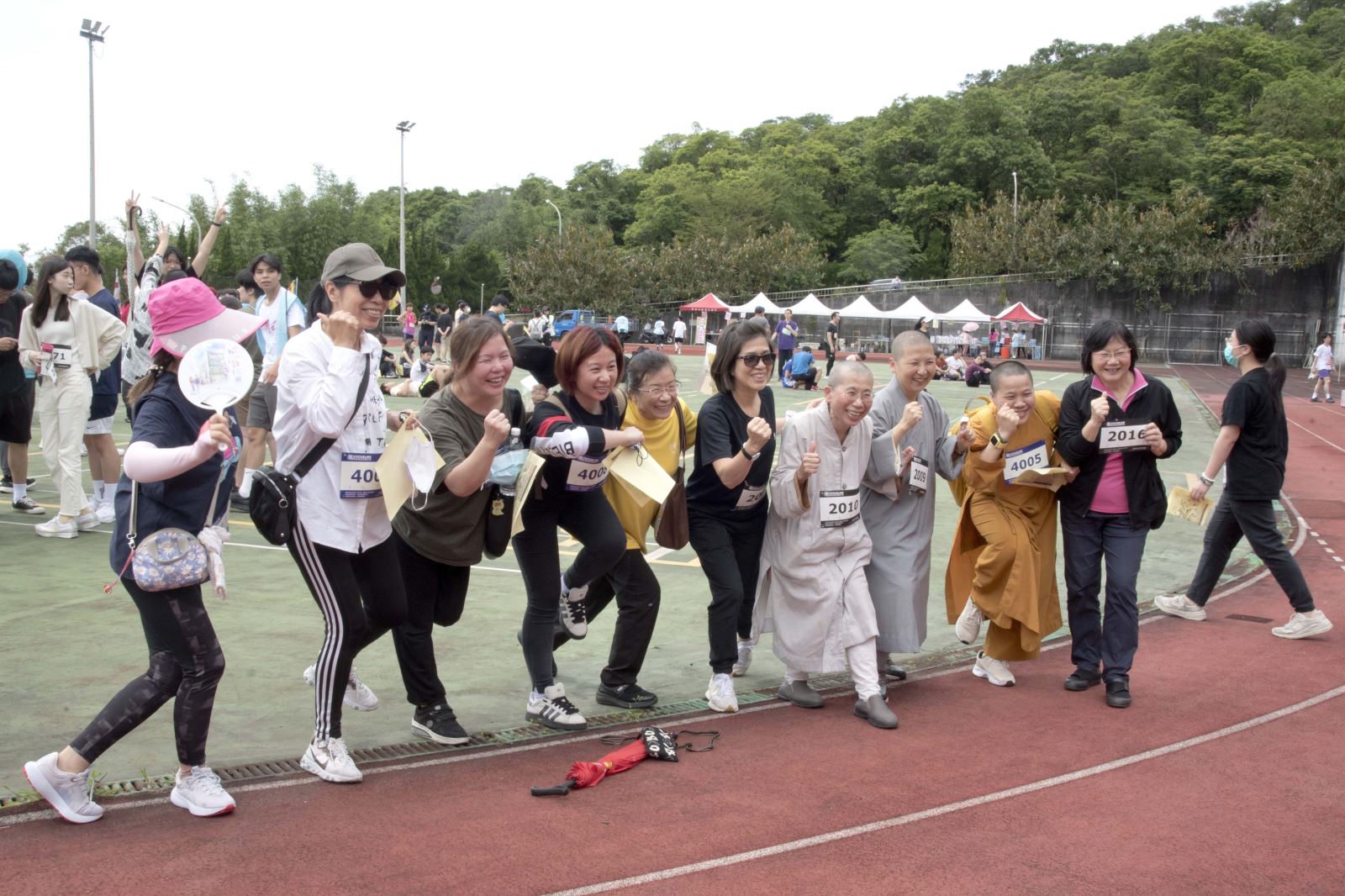 比賽開始前,先由Danny老師以幽默輕鬆的語氣帶領大家做熱身操,全場頓時沸騰起來;緊接著在林從一校長擊磬下正式鳴槍起跑,大夥不顧超過30度的高溫奮力往前衝,將華梵人的活力整個激發出來!