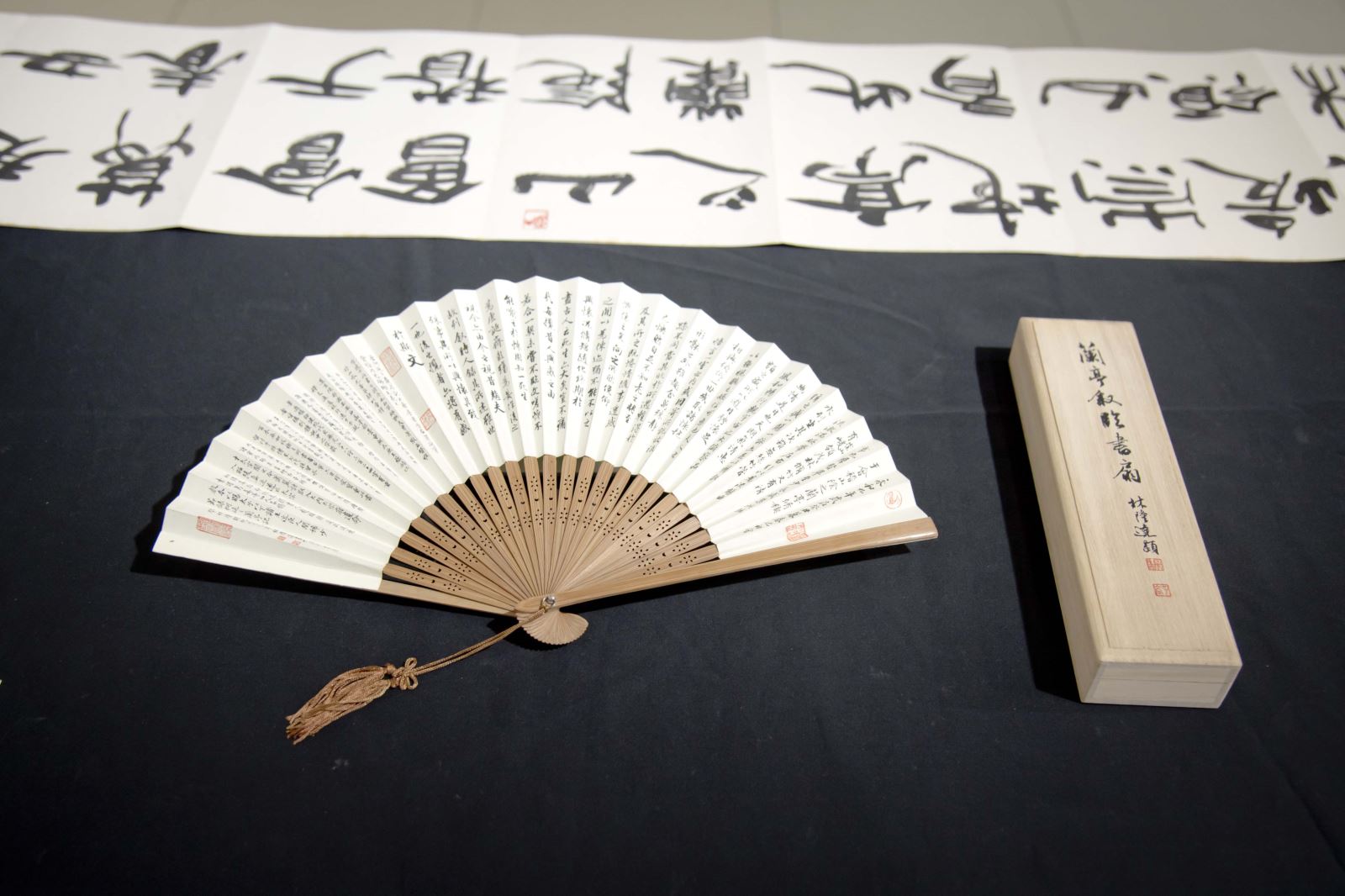 臺灣藝術大學林隆達兼任教授作品《蘭亭序 書扇》。