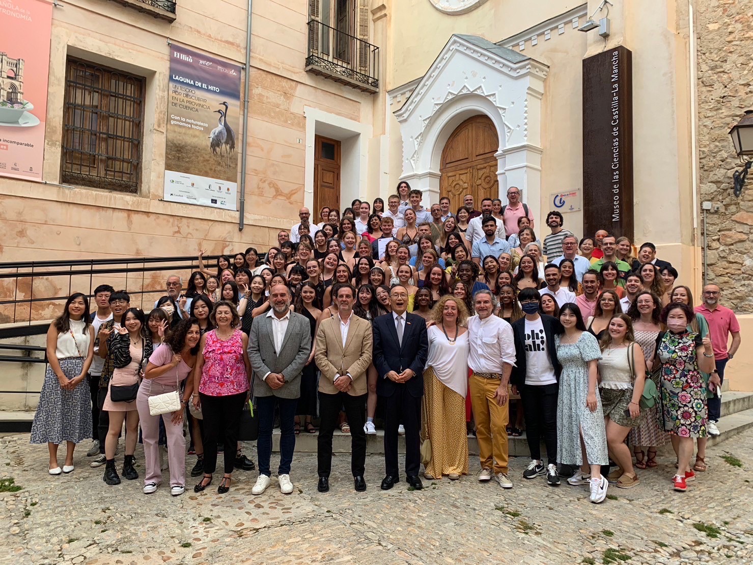 在學校獎學金補助下,華梵大學學生至西班牙遊學,與各國學生合影。