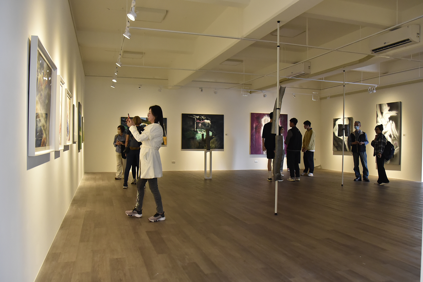 在一陣喝采聲中,金獎頒給了創作《Re在幽暗的表面發現不明物品》的美術系碩士班四年級陳岳宏。陳岳宏不僅同時包辦複合媒材類組第一、二名,也獲選2023金車美展新銳藝術家,他特別感謝學校提供同學這麼完善的空間辦展覽,對創作者來說是非常大的鼓勵。