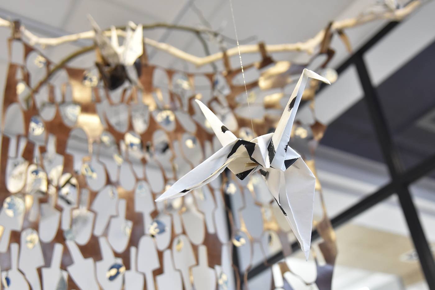 佛教藝術學系碩專班三年級陳春燕的裝置藝術作品《之間—流轉的符號》。