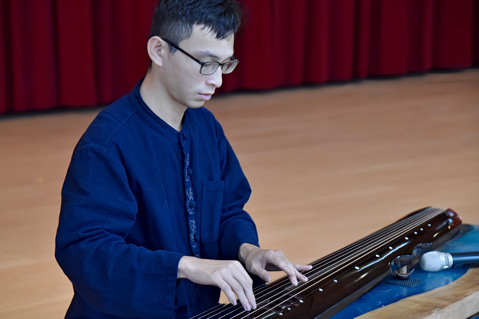 佛教藝術學系碩士班洪于翔同學為大家帶來古琴演奏,緬懷創辦人曉雲導師。