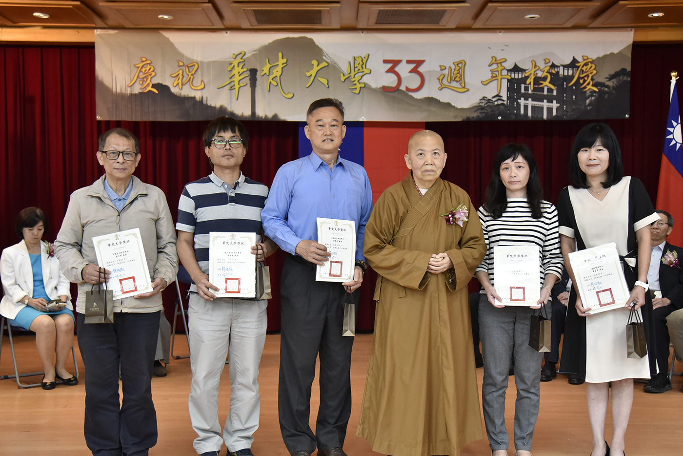 在頒獎高潮的熱烈掌聲中,華梵大學33週年校慶典禮圓滿落幕,典禮外另有校慶園遊會、運動嘉年華、文創市集、校慶美展、書法展、唐卡特展、曉雲導師校史資料展等多項師生同樂活動,讓整個華梵校園充滿了熱鬧歡樂的氣息。
