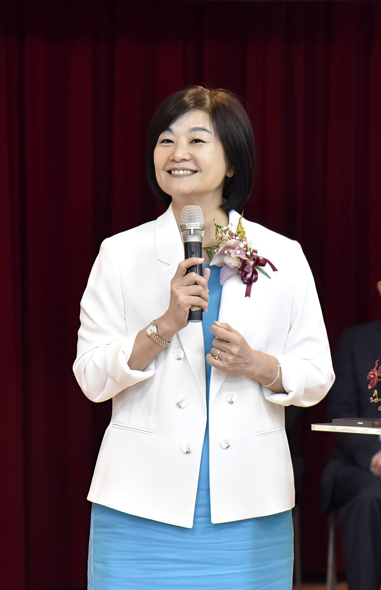 簡江儒教務長代表華梵資深教職同仁服務獎得獎者上台致詞。