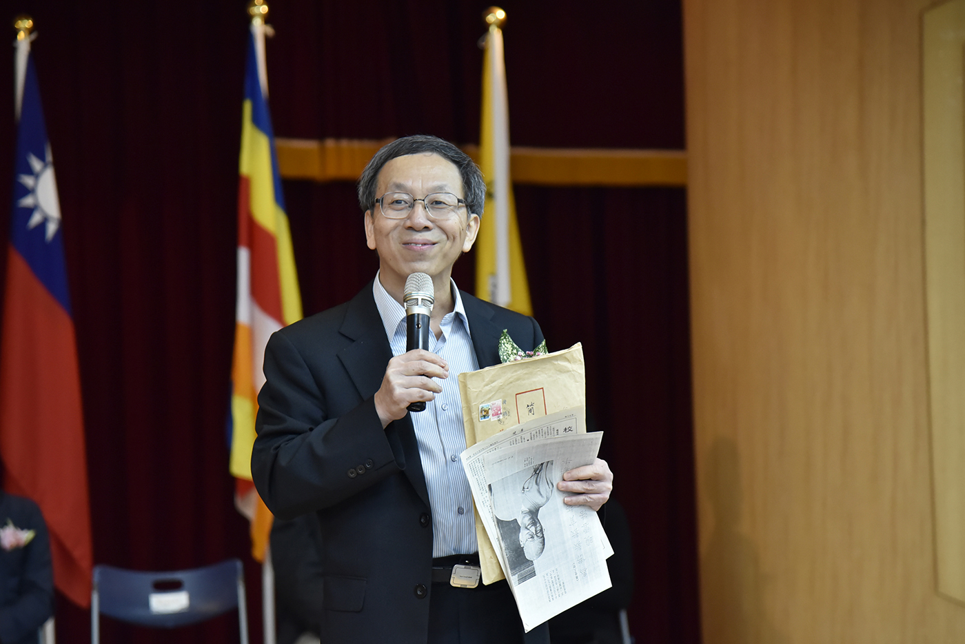 簡江儒教務長更當場秀出塵封30年的資料袋哽咽表示,他今年60歲,一生最精華的歲月全貢獻給華梵大學,「華梵就像母親一樣養育我!」、「對創辦人曉雲導師,我只有兩個字:感恩!」期待在具體的校務發展策略與計畫推動下,華梵人能前仆後繼,繼續創新求變,永續經營。