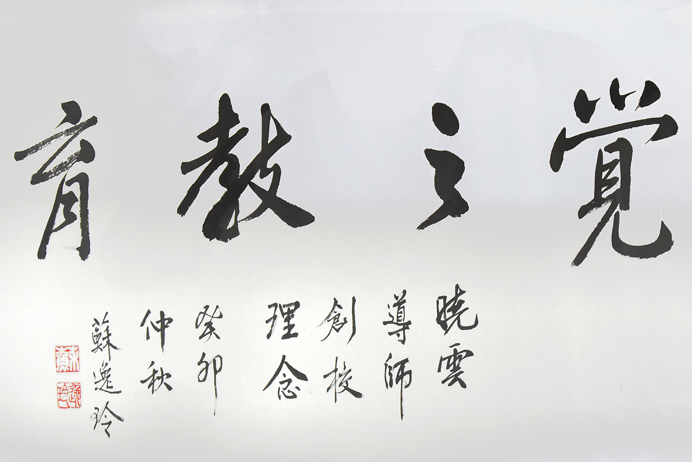 感念華梵大學創辦人曉雲導師,蘇逸玲特別於展場展出曉雲導師贈送的書畫作品。