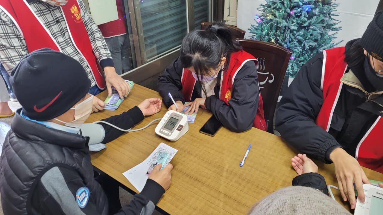 華梵大學同學為里民測量血壓。