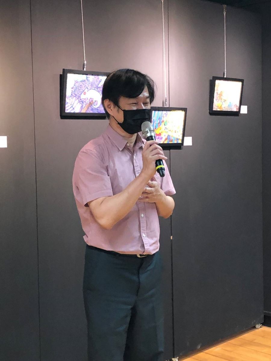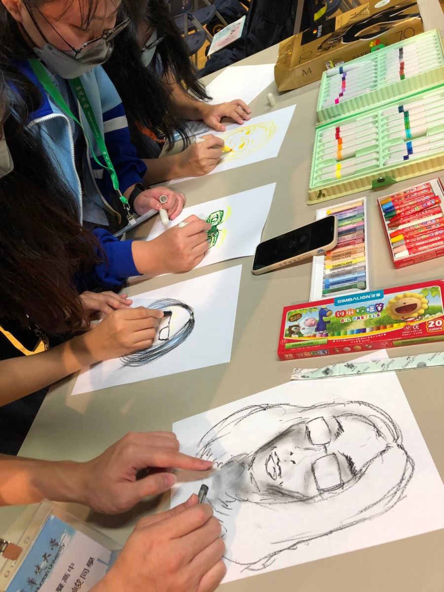 而華梵大學林從一校長來到會場時,逗趣的在互動區畫了一張自畫像,並說,這讓他想起女兒年幼時,總會蹲在自己的書桌下拿著A4紙隨意的畫。A4紙的意義是可以不被太多條件給限縮,隨時可以表達自己的情感想像,可以看到同學們在不受限制下,創作出的的成品,非常感人!