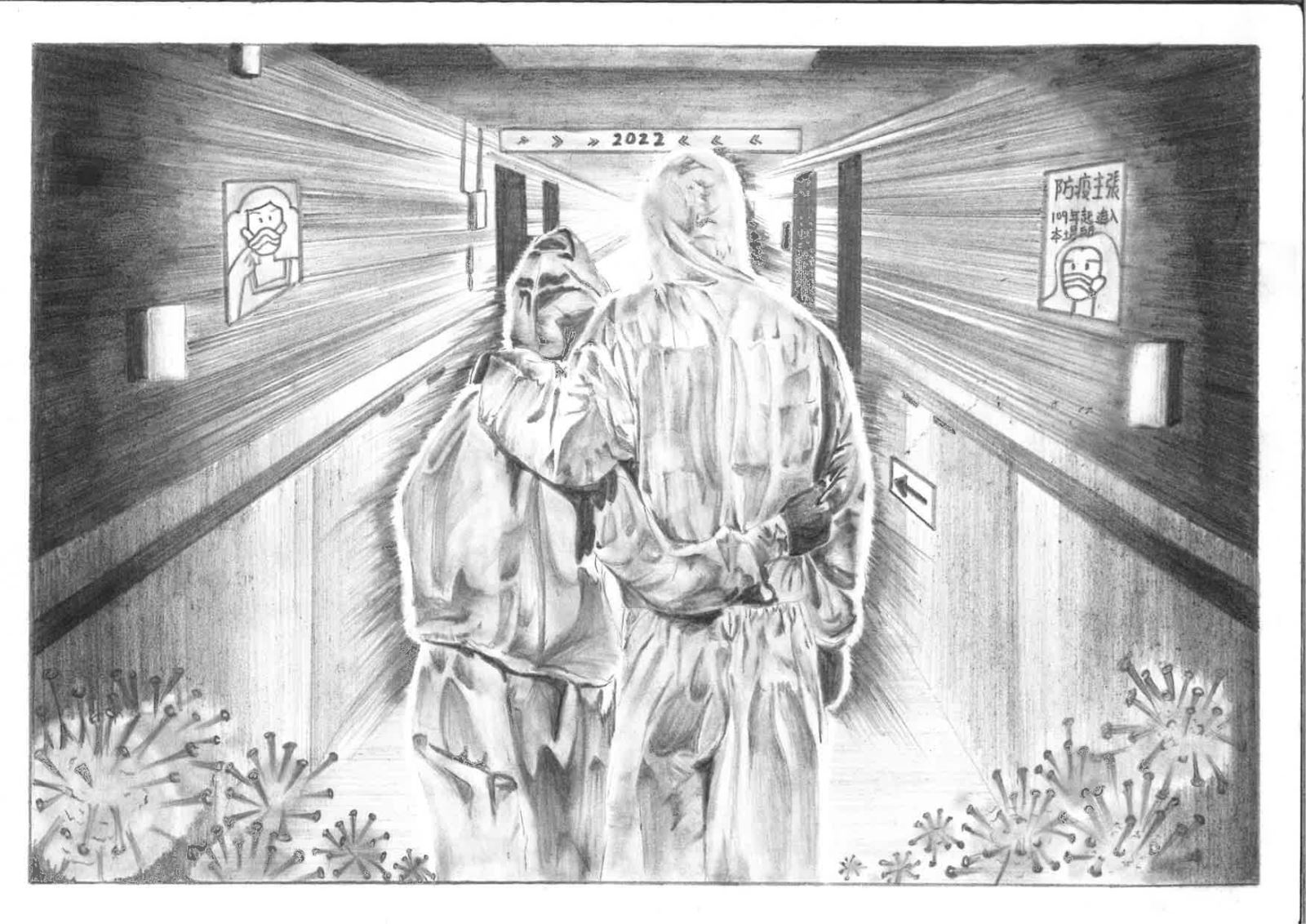 特優-江泰莉同學作品「疫起勇往直前」。
