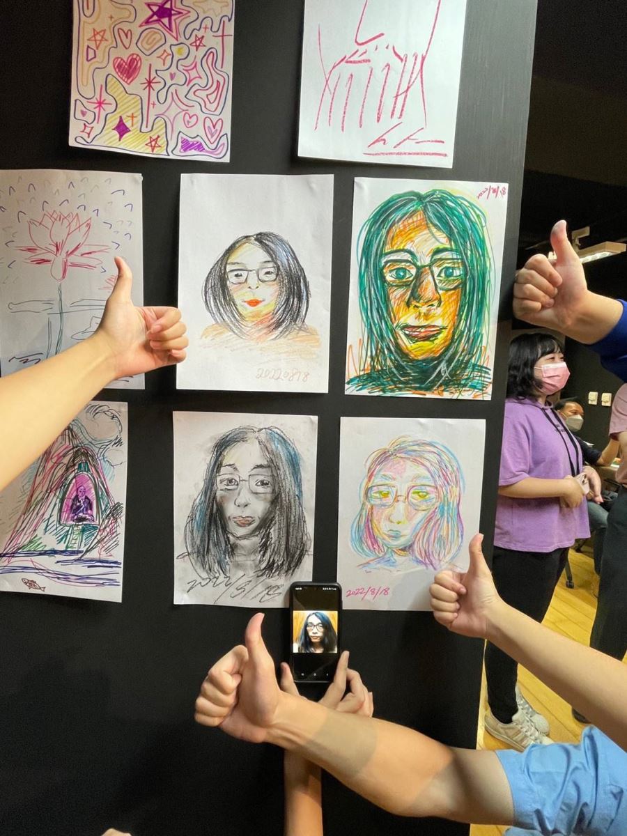 華梵大學林從一校長於現場互動區繪製自畫像。