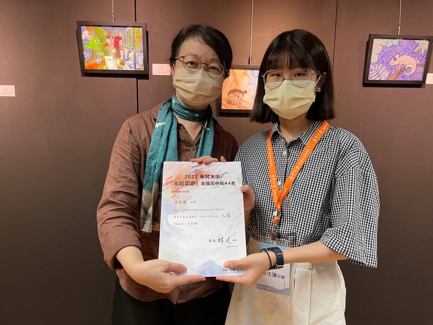 由華梵大學美術與文創學系主辦的「風起雲遊 2022全國高中A4插畫秀」,得獎作品於8月18日在華梵大學新北板橋中心藝術空間頒獎及展出。本次是第三屆的賽事,競賽主題為「向前看」,共有50名得獎者(特優5名、優選5名、佳作15名、入選25名),於全國各高中職生及畫室的574件投件插畫作品中,脫穎而出,展現出年輕藝術人的專業與潛力。