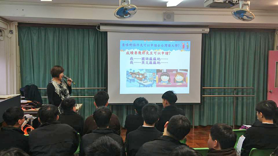 寒假不打烊 華梵赴香港各中學舉辦升學講座 為了加強境外招生,國際交流中心金敏玲執行長與黃明義學務長於2018年1月30日啟程赴香港各高中進行升學講座,並訂於2月3日於香港教師會舉辦「香港學生赴臺升學說明會」。 金敏玲執行長與黃明義學務長於1月30日抵達香港後,便立即拜訪佛教孔仙洲紀念中學,金敏玲執行長以粵語簡報,藉由活潑生動的內容,向同學介紹本校辦學理念及各系所特色,與學生間的語言溝通上完全沒有隔閡,互動非常熱絡,學生也踴躍提出擬前往臺灣留學之相關問題。金敏玲執行長本為香港僑生,也將自己留臺經驗與同學分享,說明會活動結束後,與佛教孔仙洲紀念中學的吳美蘭及陳嘉寶老師共商兩校未來交流事宜。 1月31日金敏玲執行長與黃明義學務長拜會教育部派駐香港之台北經濟文化辦事處許睿宏參事、香港旅遊學庫董事長關錦智先生、香港生命教育促進會首席顧問李志文博士會談目前臺灣與香港學生交流之各種現況。許睿宏參事特別說明,今年開始香港學生的入台簽證,可直接於網路上申請辦理,對於有意來臺灣升學的港生,是非常好的消息。