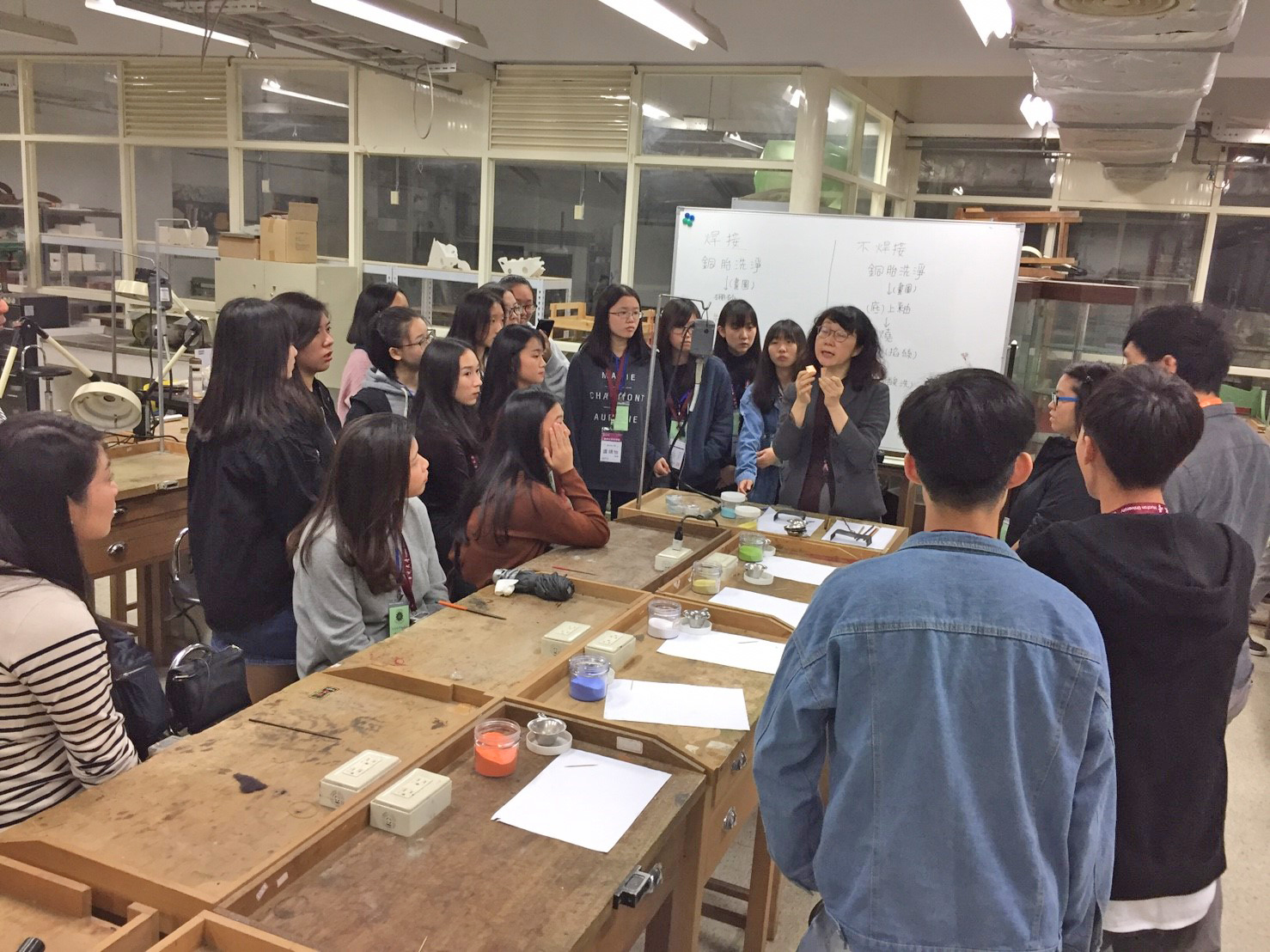 美術與文創學系聶蕙雲老師指導「金工琺瑯設計」體驗課程。