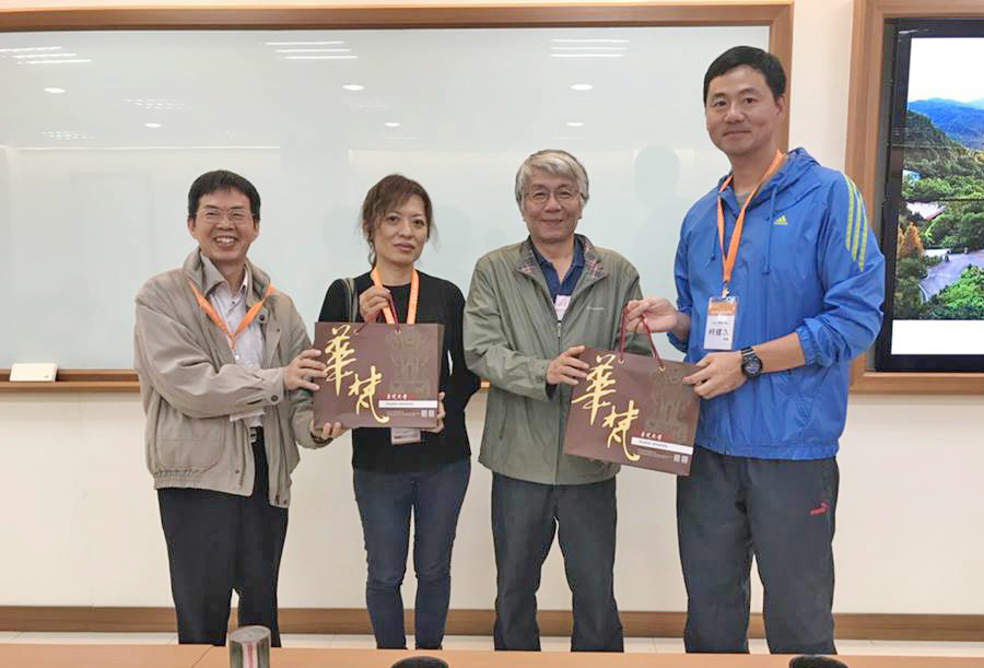 (左起)華梵大學招生發展中心執行長羅勝益教授、及人高中鄒湘齡老師、圖資長張鴻彬老師、及人高中柯健次老師。