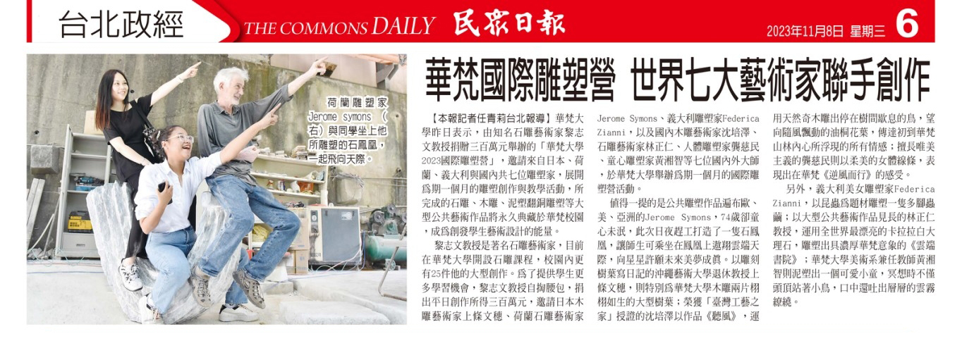 由知名石雕藝術家黎志文捐贈300萬元舉辦的「華梵大學2023國際雕塑營」,邀請海內外7名雕塑家展開1個月的創作,完成的作品將永久典藏於華梵校園。