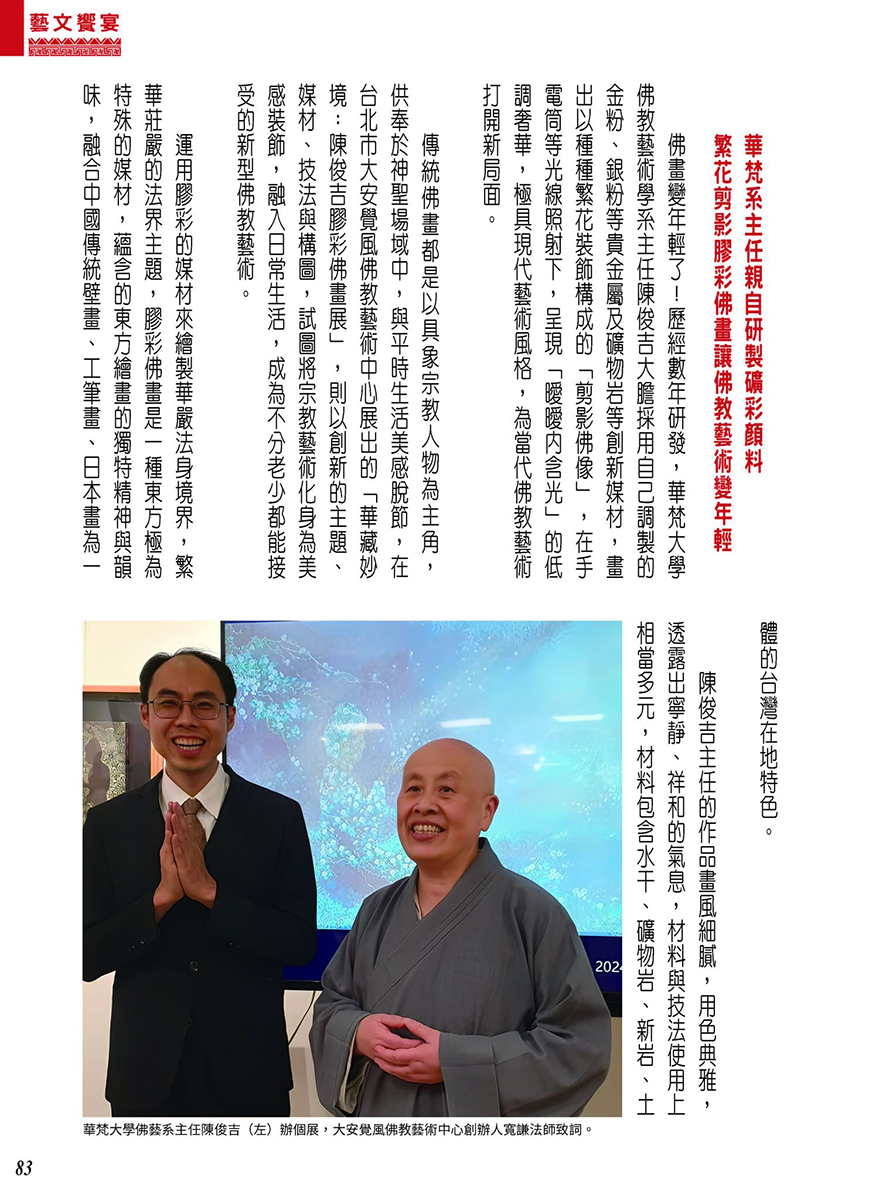 華梵佛藝系陳俊吉主任親自研製礦彩顏料 繁花剪影膠彩佛畫讓佛教藝術變年輕(佛祖心雜誌)