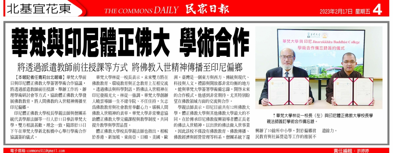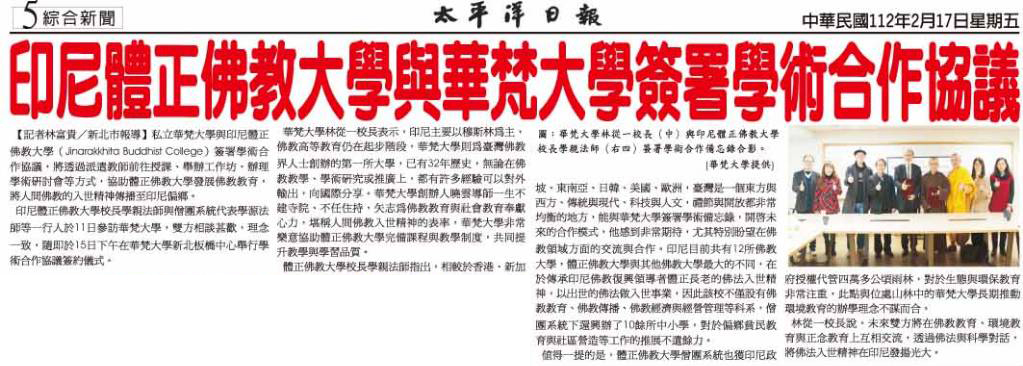 其他媒體: 國立教育廣播電臺 https://www.ner.gov.tw/news/63edf4e4d6ae840007a40d79 中央社 www.cna.com.tw/Postwrite/Chi/335110 聯合新聞網 udn.com/news/story/6885/6974812 太平洋新聞網 http://www.pacificnews.com.tw/shownews.php?postnewsid=17&titleid=33308 中時新聞 https://www.chinatimes.com/realtimenews/20230217004677-260405?chdtv 引新聞 https://innews.com.tw/89736/ 佛門網 https://reurl.cc/0ZWk16